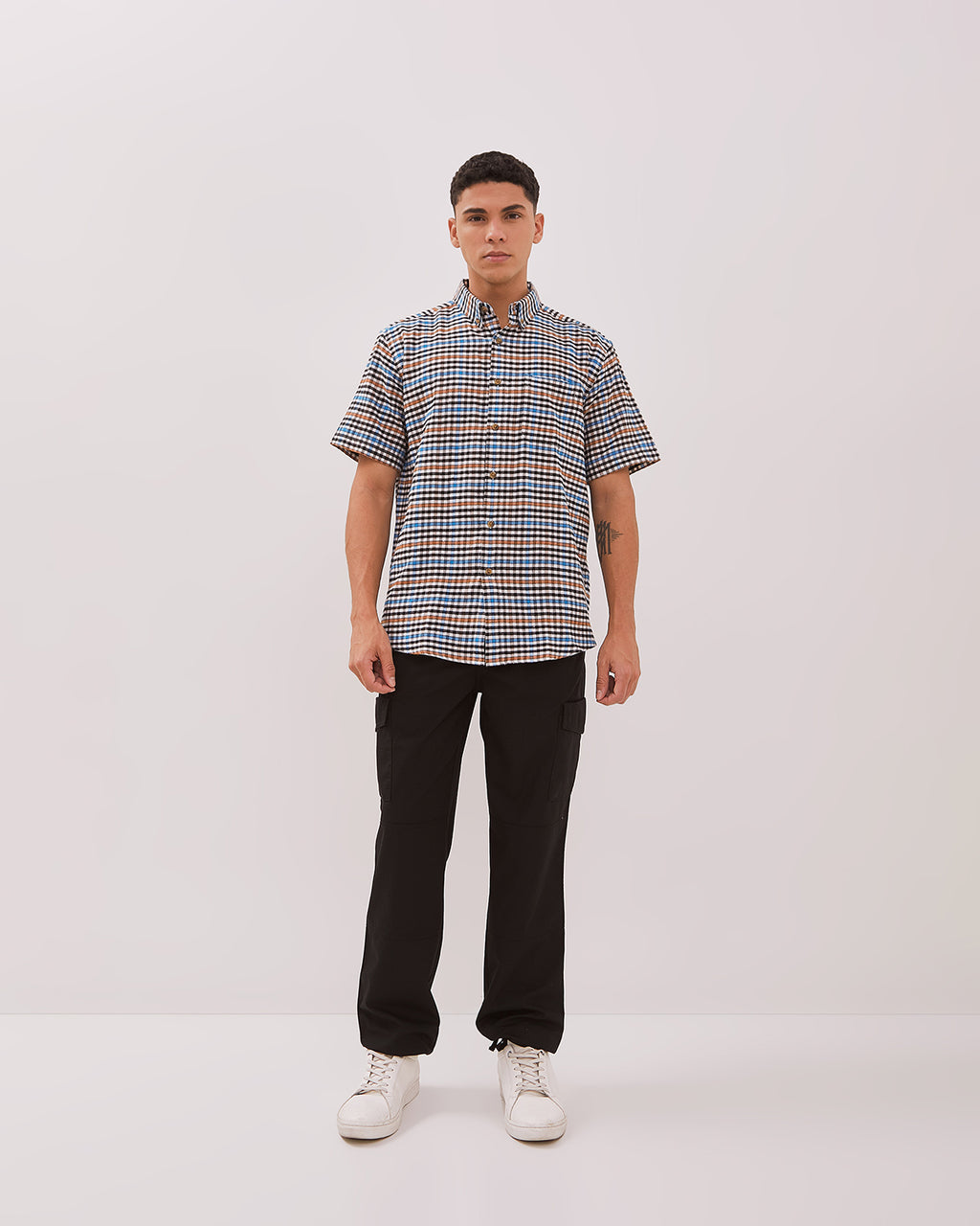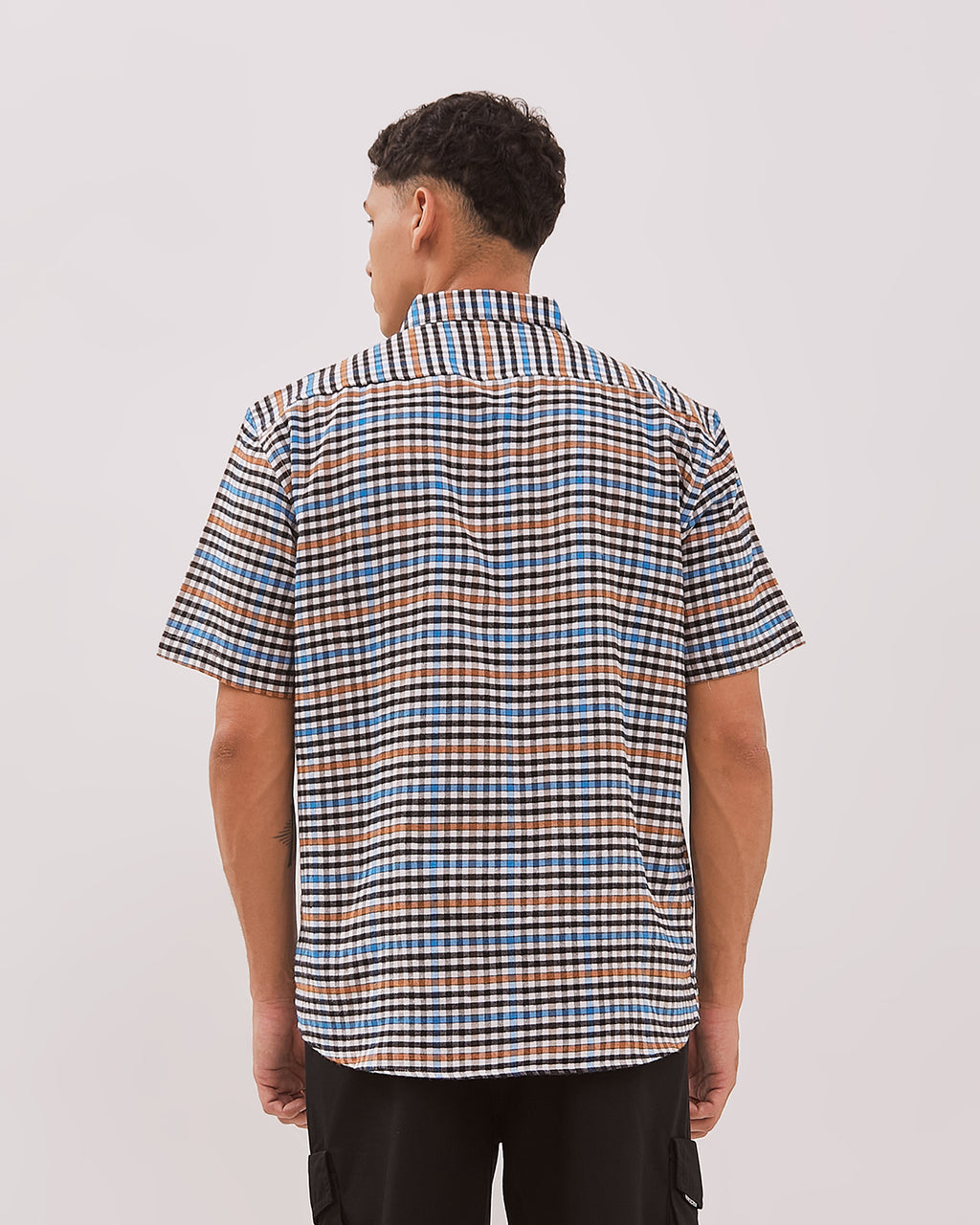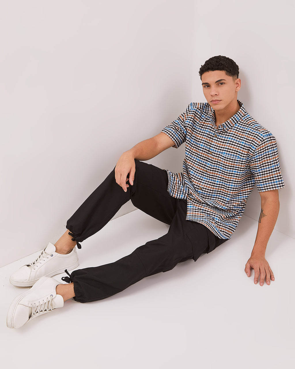 - Kombinasi Cokelat, Biru, Putih, Hitam